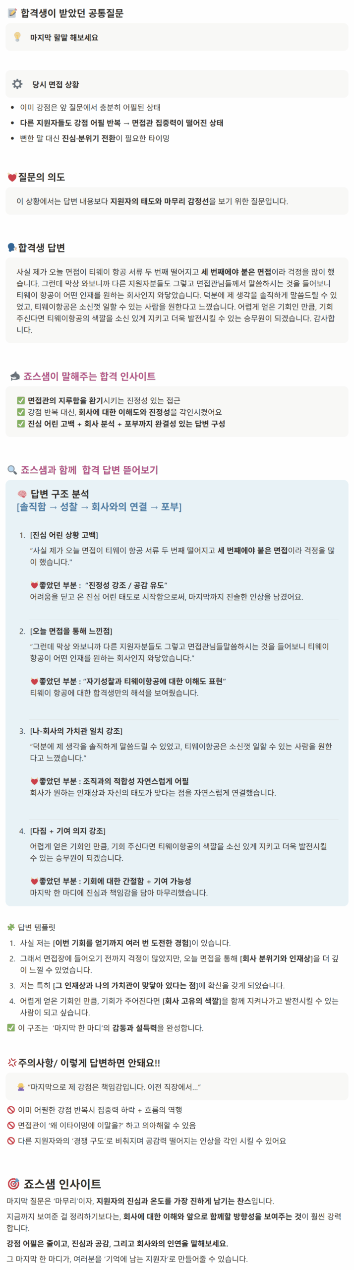 오늘의 포스트입니다. [티웨이항공] 마지막 할 말 해보세요 댓글 달기 / publish-content / 글쓴이 josflight1 … 회원가입 후 콘텐츠를 구독해보세요.이 콘텐츠는 구독자만 볼 수 있습니다.로그인 후 구독해주세요. D-1[아시아나항공 영상면접 합격답변] 자기소개_안전역량강조ver공개 예정: 2025-12-02 00:00:00남은 시간 계산 중...D-2[아시아나항공 영상면접 합격답변] 신규취항지 추천공개 예정: 2025-12-03 00:00:00남은 시간 계산 중...D-3[기업분석]대한항공, 도심 숲 조성 ‘그린 스카이패스’ 2차 프로젝트 실시공개 예정: 2025-12-04 00:00:00남은 시간 계산 중...