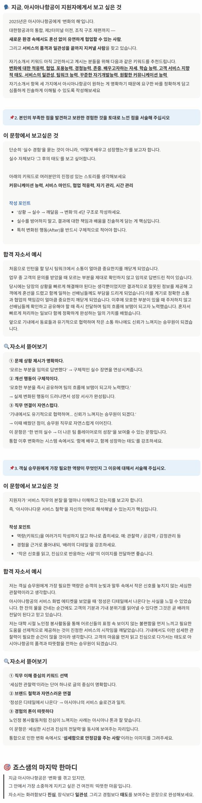 오늘의 포스트입니다. [아시아나항공 자소서 같이써요]성장과 일관성으로 완성하는 2,3번 문항 댓글 달기 / publish-content / 글쓴이 josflight1 아시아나항공 영상면접 합격전략 무료 live 특강에 죠스레터 구독자분들을 초대합니다.https://open.kakao.com/o/gjoy0B1h(입장코드: 2025) … 회원가입 후 콘텐츠를 구독해보세요.이 콘텐츠는 구독자만 볼 수 있습니다.로그인 후 구독해주세요. D-1[아시아나항공 영상면접 합격답변] 자기소개_안전역량강조ver공개 예정: 2025-12-02 00:00:00남은 시간 계산 중...D-2[아시아나항공 영상면접 합격답변] 신규취항지 추천공개 예정: 2025-12-03 00:00:00남은 시간 계산 중...D-3[기업분석]대한항공, 도심 숲 조성 ‘그린 스카이패스’ 2차 프로젝트 실시공개 예정: 2025-12-04 00:00:00남은 시간 계산 중...