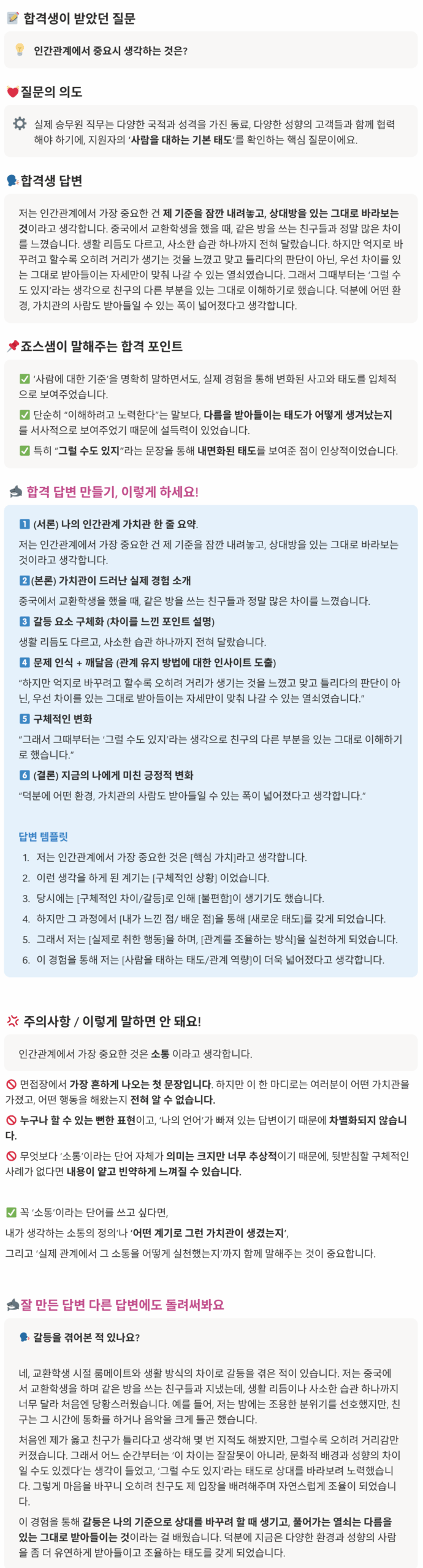 [아시아나항공 합격답변] 인간관계에서 중요시 생각하는 것은?