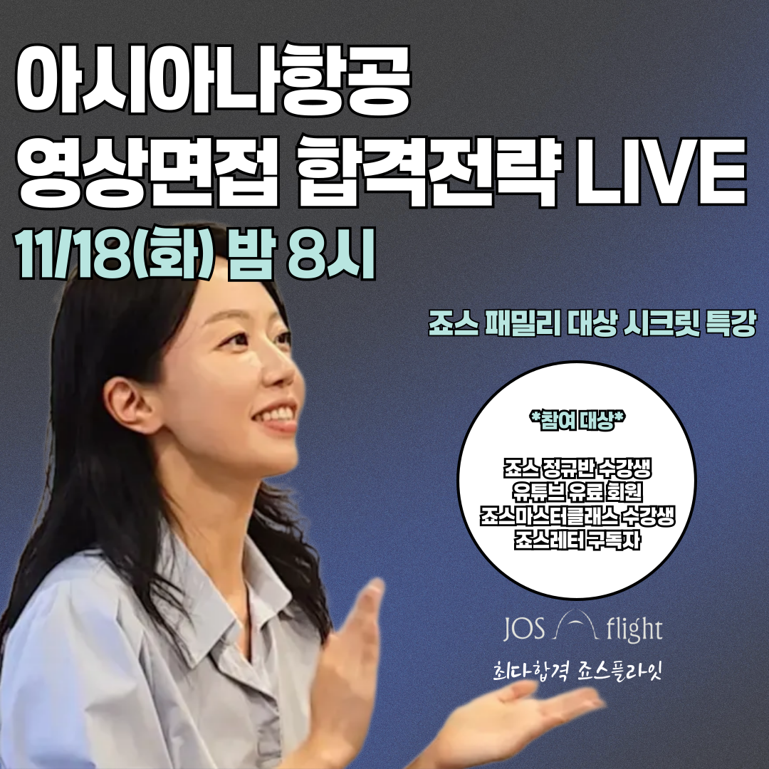죠스레터 구독자 전용11/18(화) 저녁 8시 아시아나항공 영상면접 합격전략 무료 시크릿 특강에 초대합니다.아래 오카방 링크로 접속해주세요 (입장코드 : 2025)https://open.kakao.com/o/gjoy0B1h   …