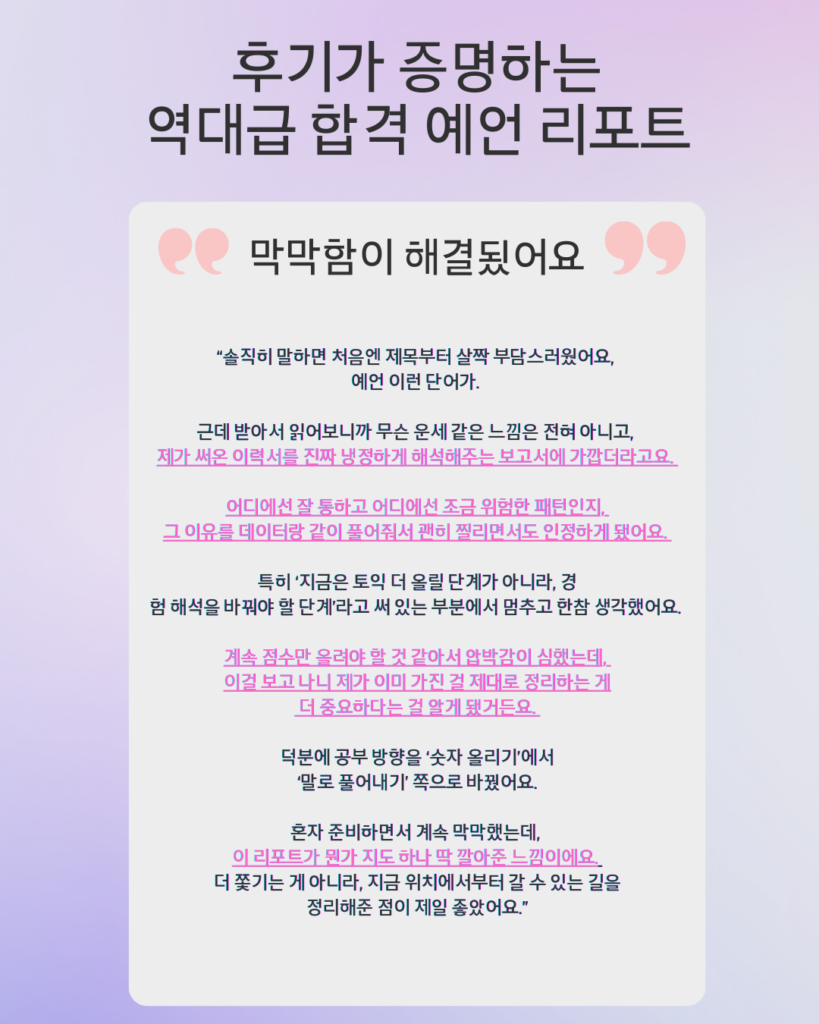 사전예약자분들은 2/9 이후부터 순차적으로 레포트를 발송해드립니다.