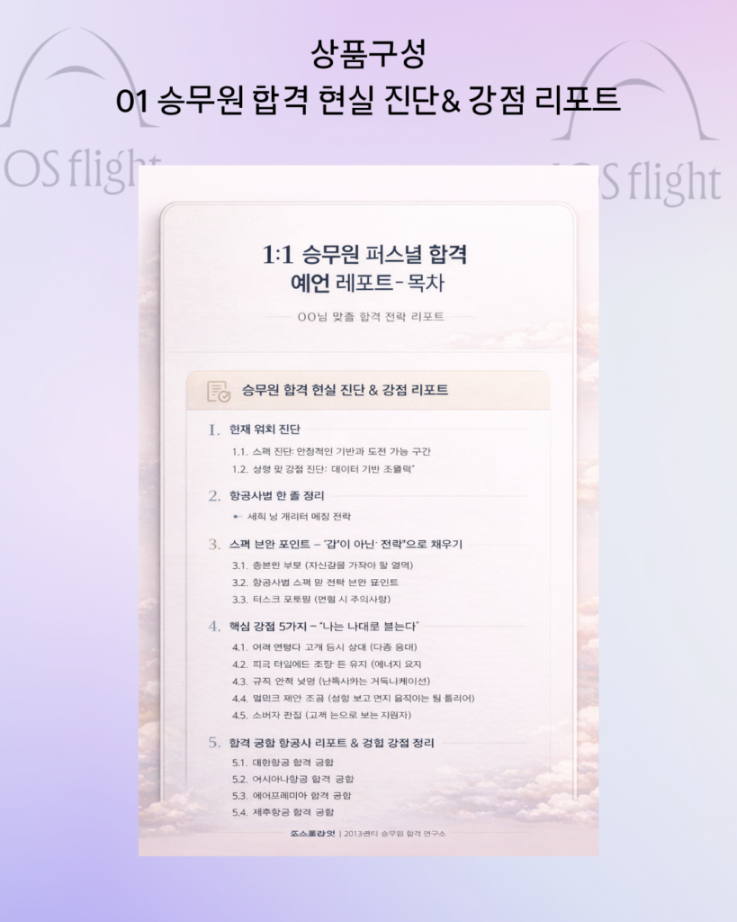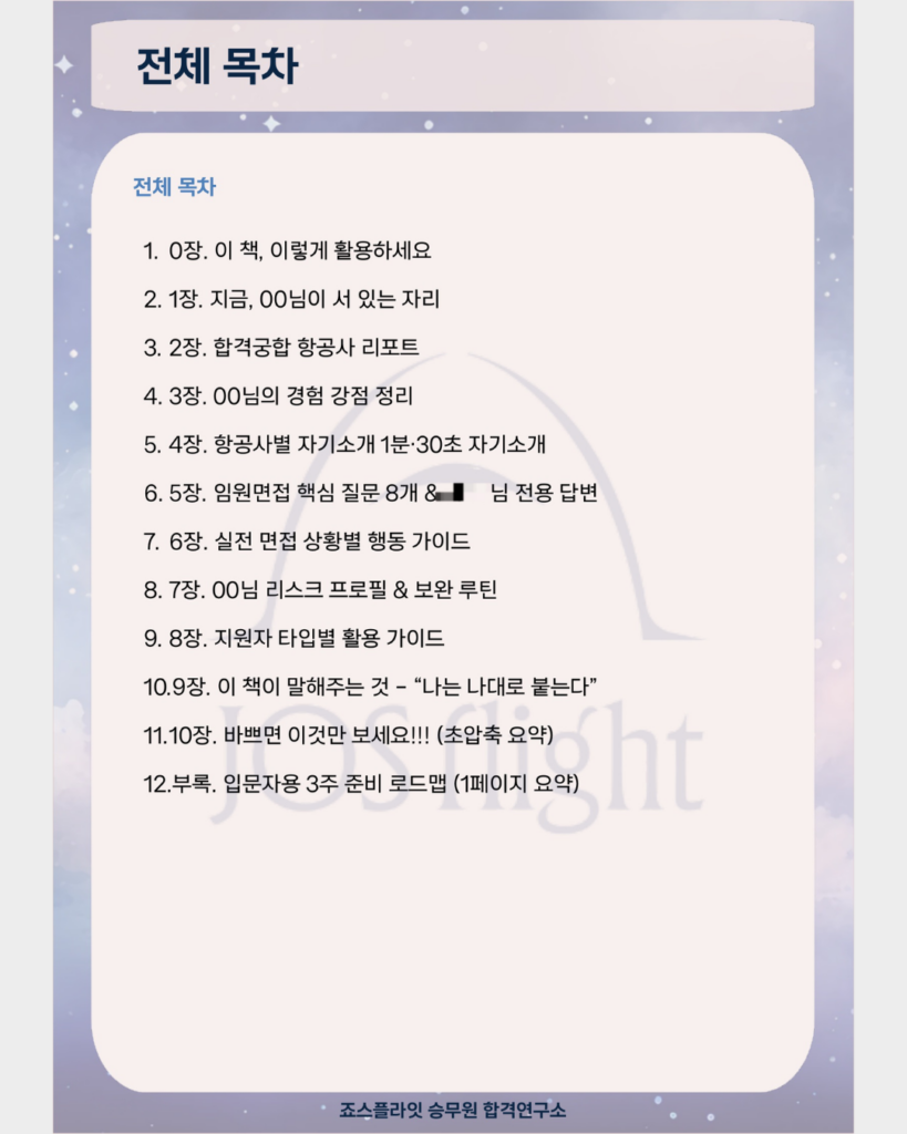 40페이지 분량 승무원 퍼스널 합격 예언 레포트를 기다려주세요 🙂